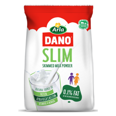 Dano Slim is milk powder with added vitamins, minerals, 100% more calcium and just 0.1% fat, specially formulated for consumers who want to maximize the benefits of milk but minimize their intake of fats.