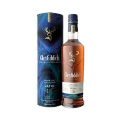 GLENFIDDICH 18 YEAR OLD: Using Spanish wood & American oak to mature this premium whisky with consistent care & detail; the result shows not only proof of maturing for 18years but also a delicate finesse of making scotch whisky.